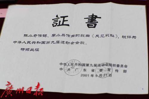 九运会会歌证书系列。