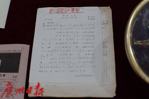 六运会会歌《中华之光》手稿。