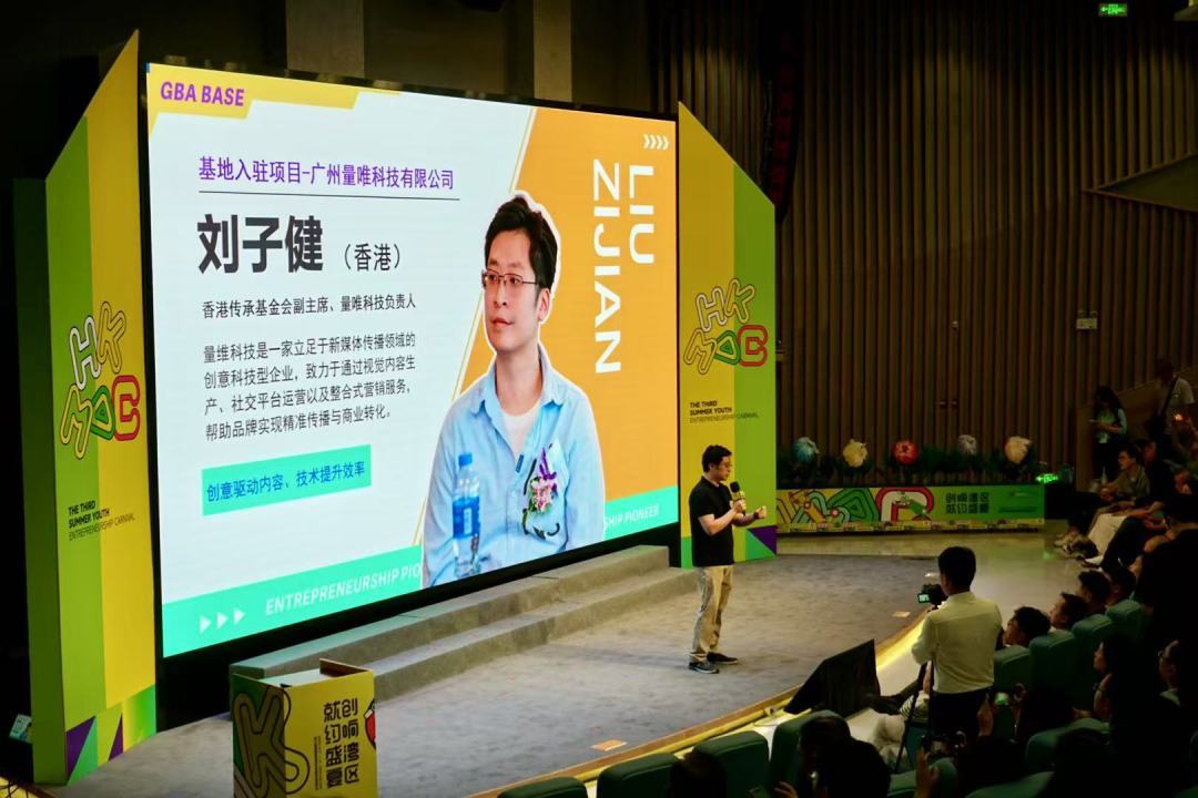 活动现场,多位创业青年站上舞台分享自己的创业项目。来自香港的创业青年刘子健的创业项目是利用AI分析数据助力企业找出品牌痛点以及新媒体运营方向。他说道,今年计划依托双创基地的平台优势,连接香港的基金会、社团等推动更多港澳青年和品牌单位融入大湾区。