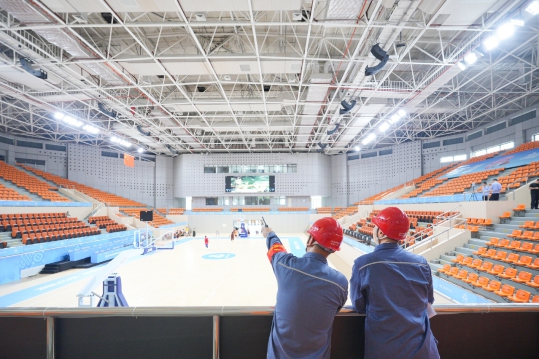 第十五届全运会篮球(男子成年组)项目测试赛于7月26日至28日在东莞体育中心举行。场内篮球健将激战正酣,场外的保电指挥部也时刻不敢松懈。东莞供电局以“一馆一团队”包干组建模式,优化保供电工作机制,加速构筑智能保电体系,圆满完成此次赛事的电力保障任务,为后续十五运会和残特奥会赛事的举办打下实战基础。