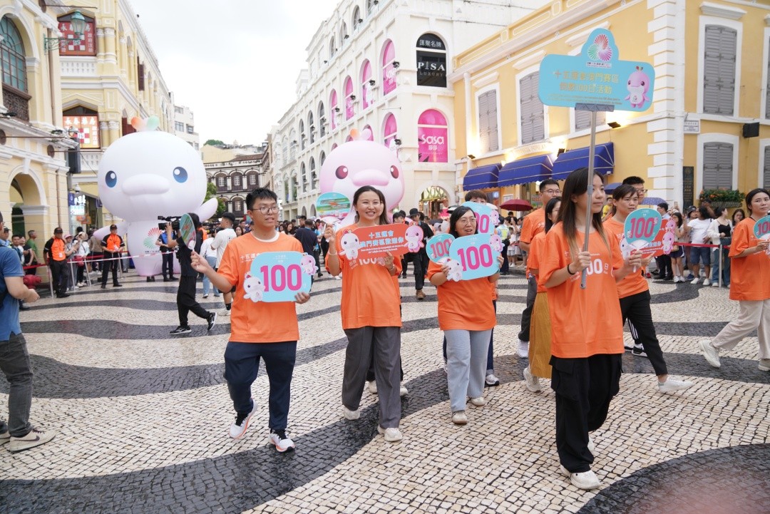 本报记者了解到,澳门特区的全运会倒数一百日活动多姿多彩,大三巴“迎百日健步行”现场,市民和游客将整个大三巴布置成欢乐的海洋,志愿者们身穿橙色上衣,摆出了“100”的数字造型,而更多参加活动的市民则举出“100”字样的手举牌,接受记者采访时,有市民说道,“倒计时100天参加这样的活动很有意义,这个‘100’的牌子不仅是100天的倒计时,还寓意本次全运会一定会取得‘100分’的成功!”