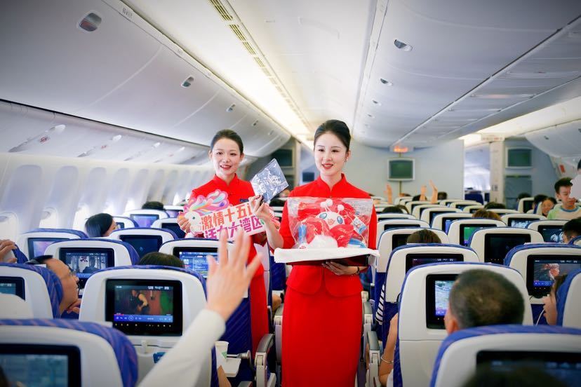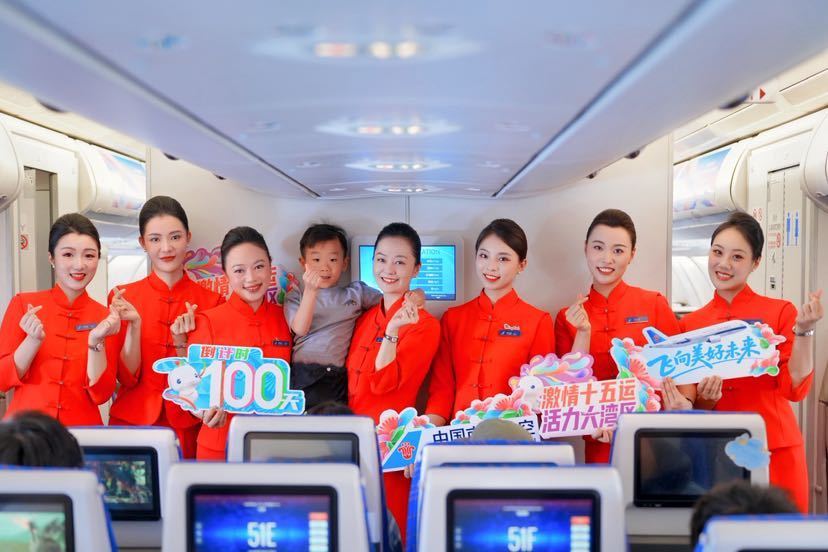 当天,南航从广州、深圳、珠海、汕头出发的国内航班上均增加了十五运会开幕式倒计时100天特色广播,并在飞往北京、成都的五个航班上,与旅客开展有十五运特色的空中互动,为乘客带来一场别开生面的全运会预热体验。当天活动覆盖1100余个航班,超16万名旅客。