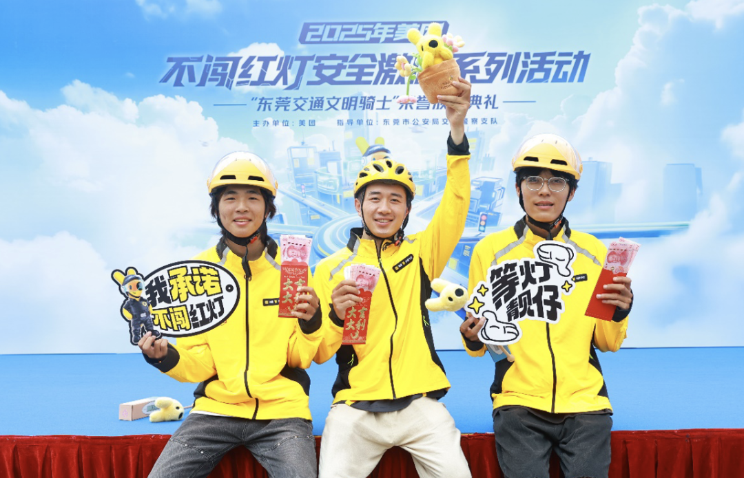 8月1日,美团在东莞举行“不闯红灯安全激励活动”暨东莞交通文明骑士荣誉颁奖典礼。在活动中,东莞市公安局交管支队相关负责人表示,“希望各外卖平台企业尽最大努力落实好主体责任,在加强骑手安全管理的同时,想出更多以正向激励代替负向惩罚的举措,引导骑手自觉遵守道路交通安全法律法规,也希望全体外卖骑手在努力赚钱的同时,增强交通安全意识和守法意识,切实做到使用合规车辆作业,遵守交通规则。”