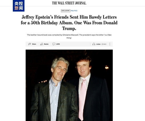 原因是该报刊登了特朗普写给已故金融罪犯爱泼斯坦的生日贺卡。特朗普怒斥其为“假新闻”并提出赔偿100亿美元。假如告赢了,这将是美国史上最大诽谤索赔案。