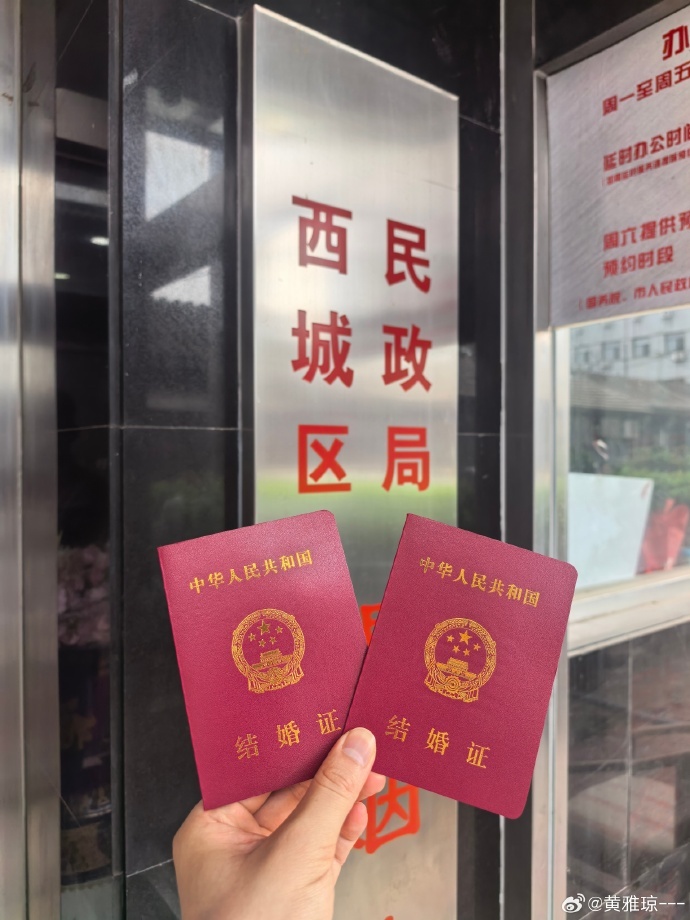 8月2日,羽毛球名将黄雅琼与刘雨辰在13:14晒照官宣领证结婚。