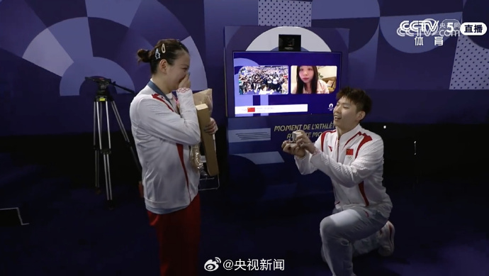 整整一年前,2024年8月2日,巴黎奥运会羽毛球混合双打金牌赛,中国组合郑思维/黄雅琼2-0战胜韩国组合获得金牌。颁奖仪式后,刘雨辰向黄雅琼惊喜求婚,黄雅琼喜获一金一钻!