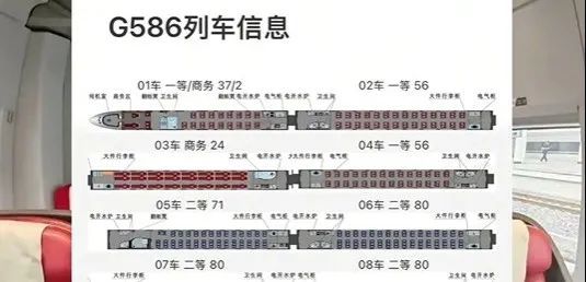 有网友在社交平台晒出的截图显示其曾经乘坐的G586次列车,存在该情况。记者查询发现G586次列车车型为和谐号(GRH380BL型),01车显示为一等/商务“37/2”。