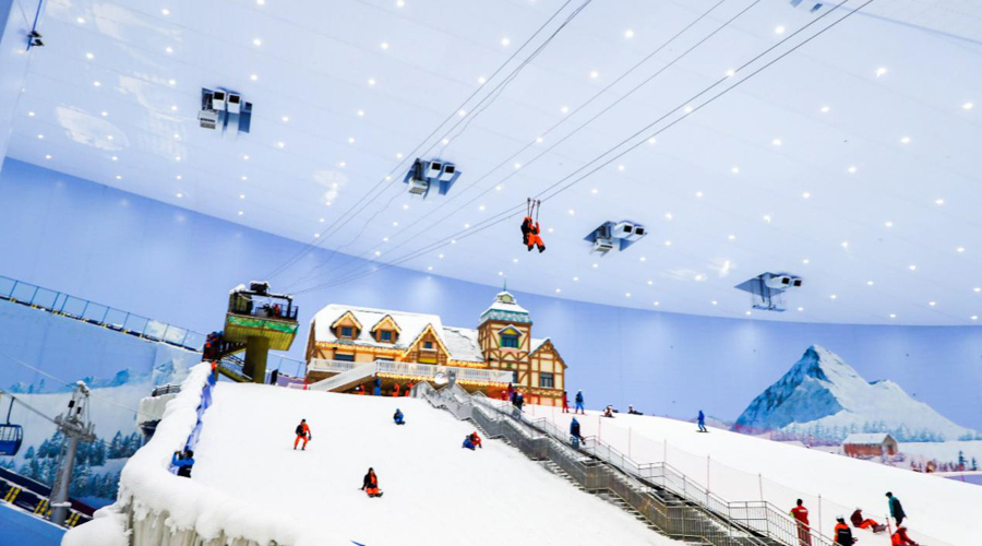 Visitors can kick off their adventure at the Canton Tower, enjoying panoramic skyline views from the world's highest horizontal Ferris wheel and experiencing the thrilling Sky Drop ride. Just across the city, Guangzhou Chimelong Tourist Resort features roller coasters, water parks, and global circus shows. For snow sports lovers, Guangzhou Bonski, the indoor ski area in Guangzhou Sunac Resort, offers a variety of snow-based entertainment options, including frisbee, zip lining, and adventure trails.