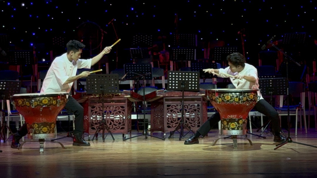记者了解到,音乐会精选16个节目,涵盖民乐合奏、粤曲弹唱、器乐独奏等多元形式。容桂民族乐团演绎的《娱乐升平》气势恢宏,展现岭南民乐的喜庆韵律;粤曲琵琶弹唱《荔枝颂》融合现代舞美设计,重现红线女经典;而《新编十面埋伏》通过琵琶与古筝的对话,以现代编曲手法重塑古曲意境,余韵悠长。打击乐《牛斗虎》以两面民乐大鼓呈现一场壮观激烈的牛斗虎场面,令人叹为观止。