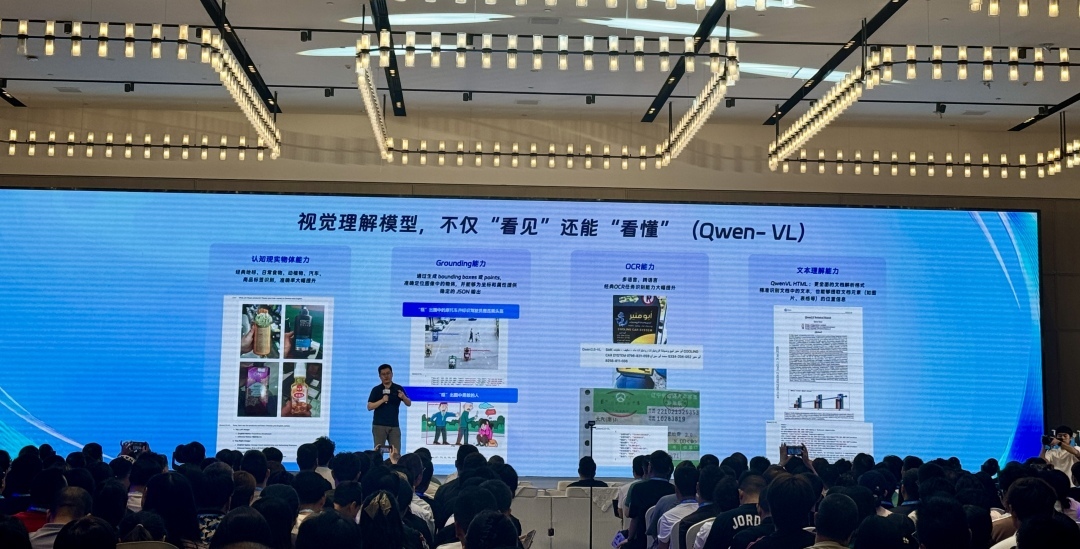 从技术底座来看,通义大模型的持续突破,正重构产业基因。阿里云副总裁、通义大模型业务总经理徐栋分享了大模型的技术进展表示:“这代大模型的核心是让机器学会人的语言,通过36T tokens(约10亿本书)的训练,具备强泛化性。”目前阿里大模型迭代节奏加速,2025年已实现每月发布多个模型,涵盖多模态、推理、代码等维度。他强调,未来模型将向“会用工具”“全模态对齐”演进,“当模型在各任务精度超95分,将深度重塑商业创新”。