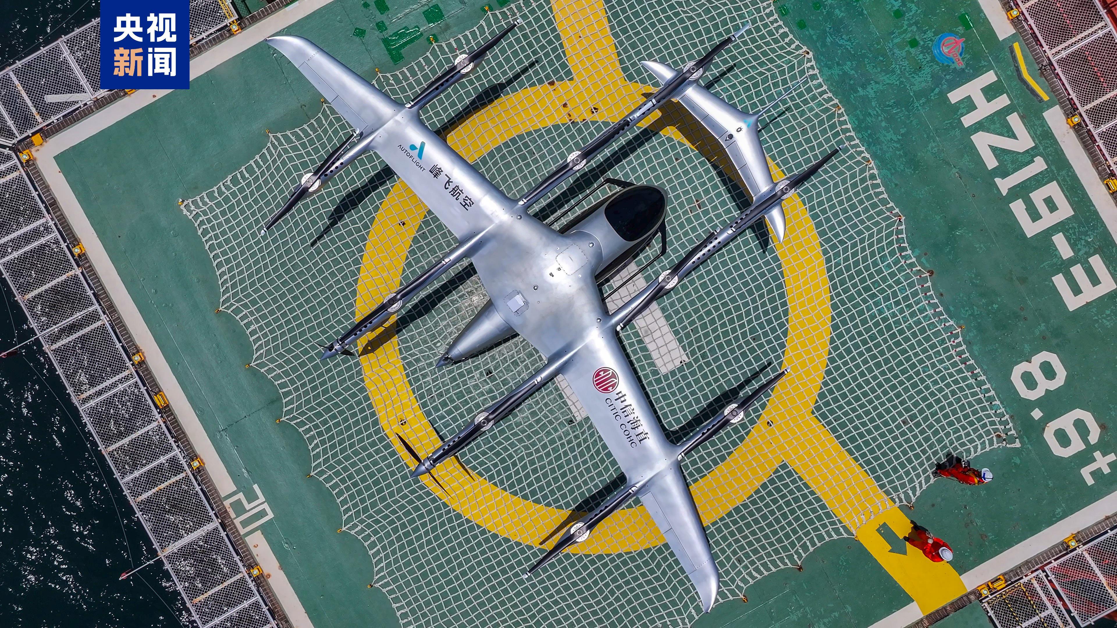 我国自主研发的2吨级电动垂直起降航空器——“凯瑞鸥”,装载新鲜水果和紧急药品等物资,从深圳陆地起降点起飞。经过58分钟的跨海域飞行,降落在距离深圳海岸线150公里的海上油气平台,成功完成了运输任务。
