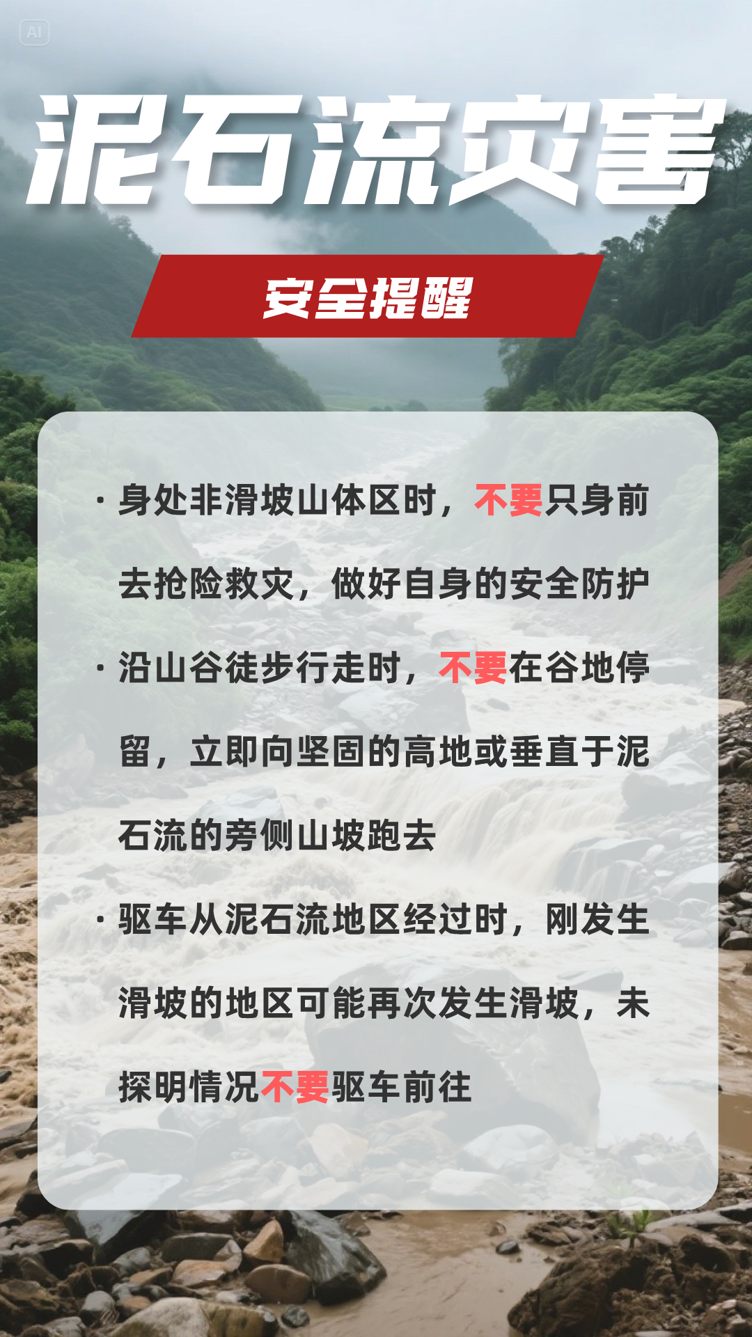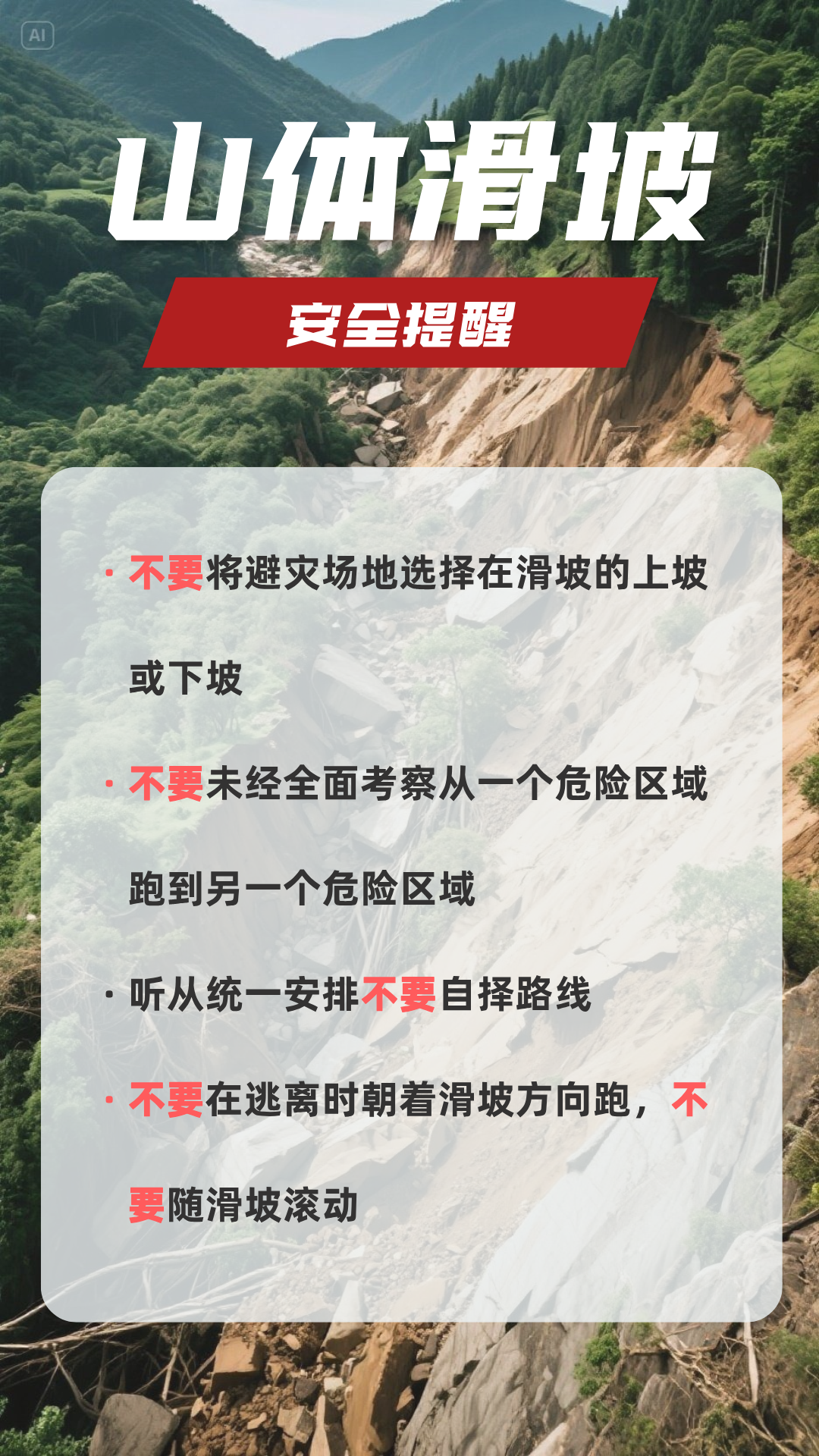 连日降雨,地质灾害风险高。大家要注意防御山体滑坡、泥石流等地质灾害和城乡积涝、山洪、中小河流域洪水等次生灾害。