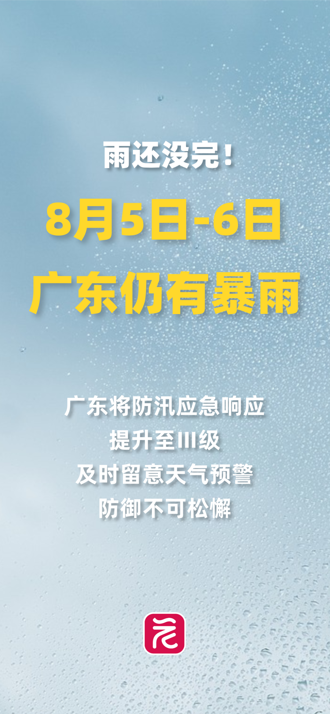 广东省防汛防旱防风总指挥部已于8月4日18时将防汛Ⅳ级应急响应提升为防汛Ⅲ级应急响应。