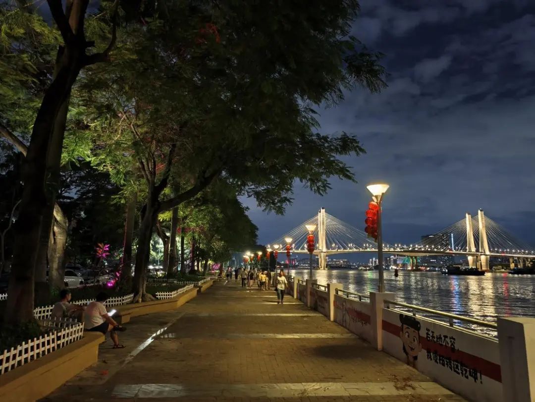 中海蓝湾江边一期亮化工程显著提升了夜间环境,吸引更多居民散步观景,人流量显著增加。然而新的人气也暴露出设施短板:风化开裂的花基护边、坑洼的水泥地面埋下安全隐患,休闲座椅和健身器材的欠缺让居民感叹“歇脚难”。