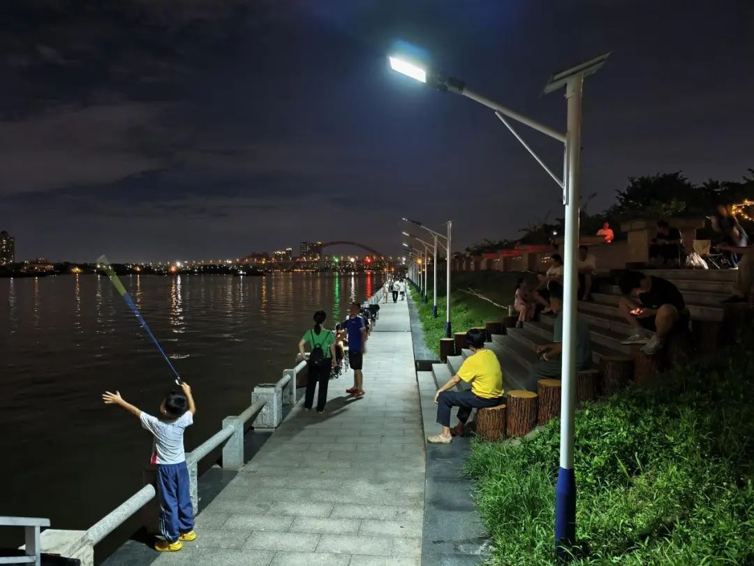 如今的200米江岸已成 “网红打卡带”:白天,白色木护栏与绿植花基勾勒雅致轮廓,色彩缤纷的彩绘护栏与党建、公益宣传栏相映成趣;入夜,太阳能灯与护栏彩绘交相辉映,柔和的灯光照亮步道,夜间人流较改造前增长迅速。
