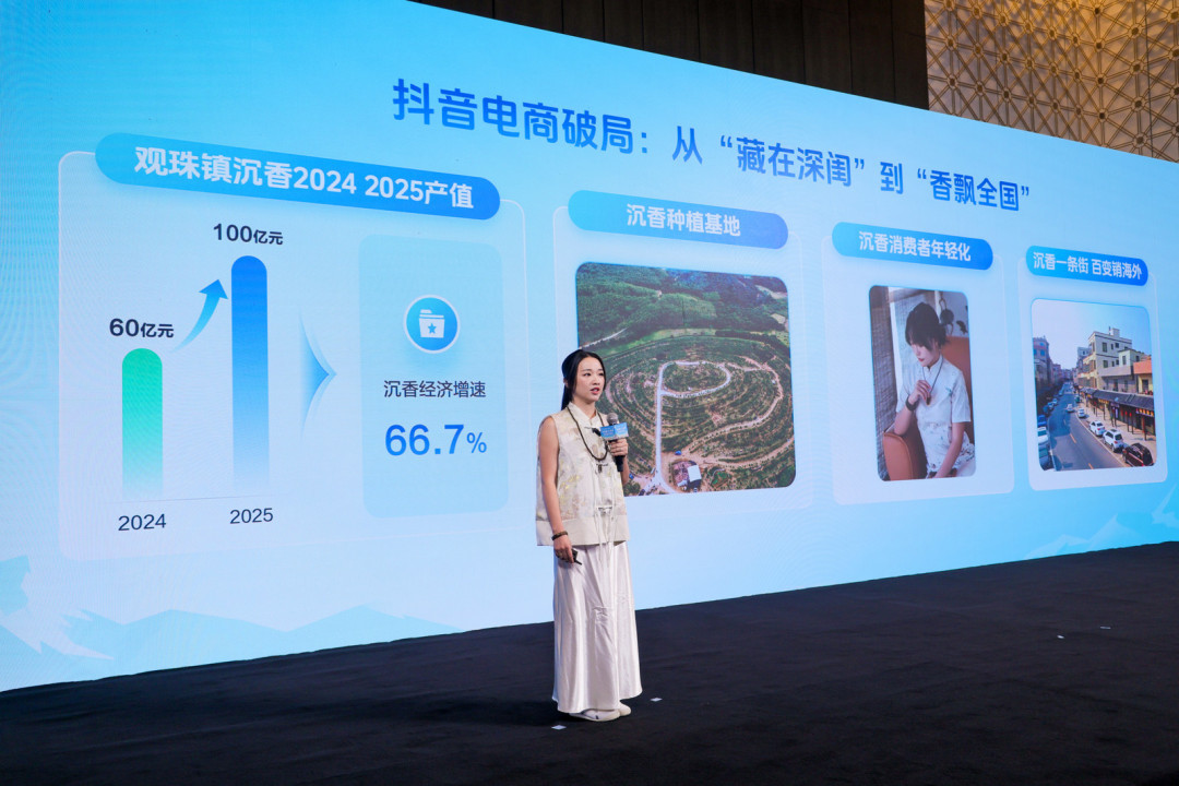 该品牌的出圈还反向推动了传统沉香产业链升级:上游带动沉香原材棋楠苗木的种植、加工,2024年电白沉香种植面积超14万亩,成为全国最大沉香种植区;下游打破“商家主导供给”模式,通过短视频和直播间互动实时洞察用户需求,快速改良产品,提升复购率,印证了抖音电商整合产业链、推动产业带升级的潜力。