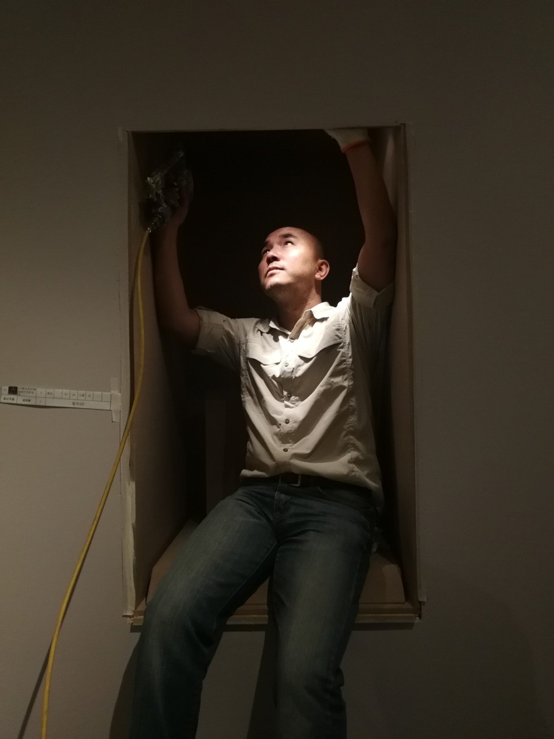 李巍在展厅为文物调试光效