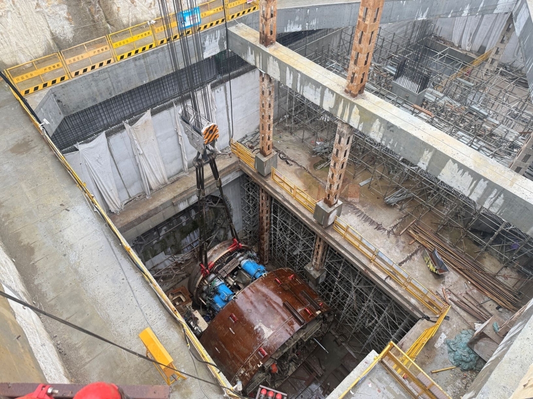 由于盾构始发井与人和站主体结构施工共用场地,交叉施工组织困难,且盾构机吊装时履带吊站位区临近附近的变电站,为保障盾构场地布置、下井组装工效,避免盾构吊装对变电站的影响,建设者们提前对吊装方案进行优化,优化履带吊站位和设备选型,细化模拟各个构件下井工况,在不影响人和站主体结构施工和变电站运转的情况下完成盾构组装下井各项工作。
