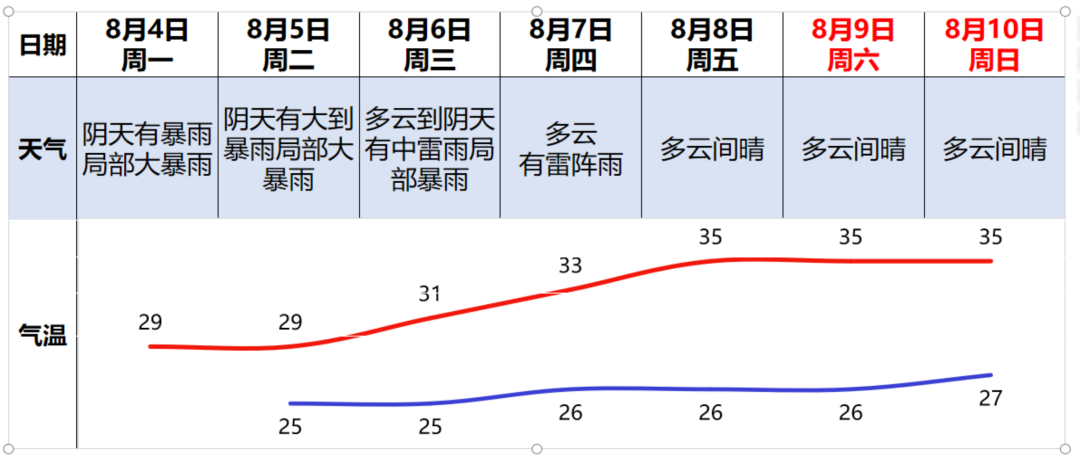 8月4日,市防汛防旱防风总指挥部办公室与市气象局、省水文局广州水文分局对我市的气象水文情况进行了会商。会商指出,预计,4日至5日,我市强降水持续,有暴雨局部大暴雨,后续累计雨量80~150毫米(局部200~280毫米),最大小时雨强60~80毫米,大暴雨落区主要在从化、增城区东部;6日,强降水范围缩小,北部局地强降水仍明显;7日起,副高增强,雨势减弱,天气又转炎热。