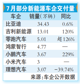 零跑交付5万辆登顶、小米交付破3万辆,理想首次跌出新势力前三……近期,多家新能源车企陆续发布7月份汽车销售数据。比亚迪、吉利等整车企业延续优势,新势力排名再次洗牌,头部企业竞争白热化。