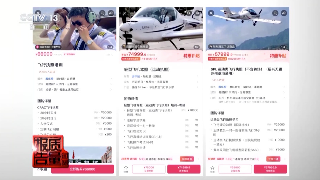 记者在网上搜索“飞行观光”发现,国内多地景区都在开展空中游览业务,有的还打出了不足百元的团购低价吸引游客。一些以飞行基地或俱乐部名义开设的网店,看不到任何相关运营资质信息。记者通过机身上涂装的通航公司信息,在民航局官网上查询,也很难找到相关通航企业的资质信息。