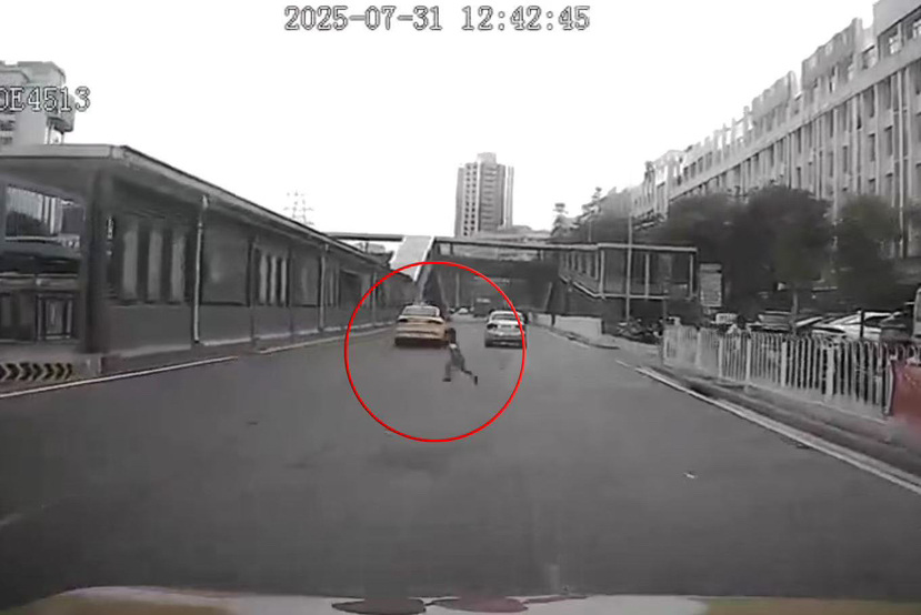 7月31日中午 12点40分,杨超驾驶出租车行驶至汇彩路与中山大道交界口珠村牌时,敏锐地发现一名在路边玩耍的年约4、5岁孩童突然从路边冲出马路,径直横穿车流密集的车道,还想继续穿越马路。彼时正值午间高峰,现场通行的车辆繁忙。