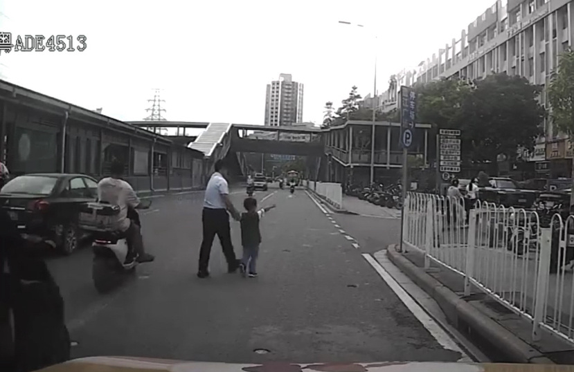 确保孩子安全后,杨超一边紧牵着小孩的手防止他再次乱跑,一边安抚小孩:“小朋友,别怕,告诉叔叔家里人在哪里呀?在马路上跑很危险的。”孩子用手指向了马路一侧的房屋。杨超小心护着孩子,观察确认路面安全后,带其安全穿过马路,并按孩子指认的方向护送回家。
