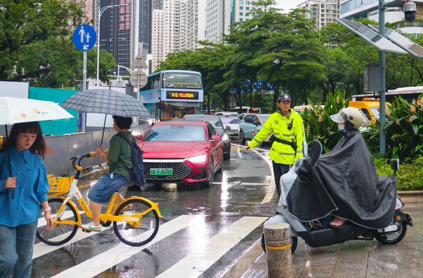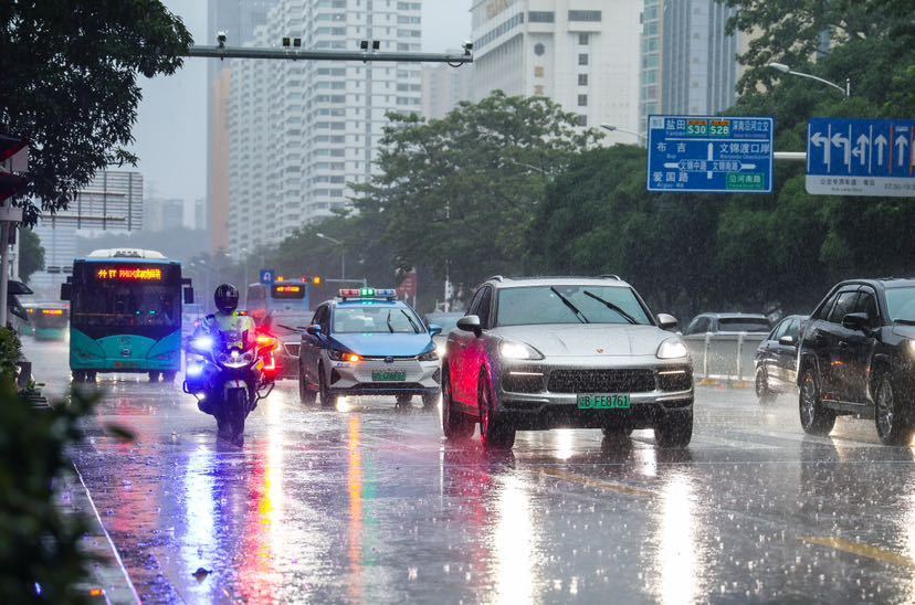 深圳交警、深圳城管、深圳应急等多部门严阵以待,应对突发情况。