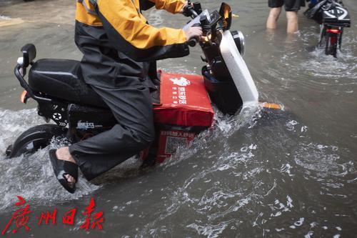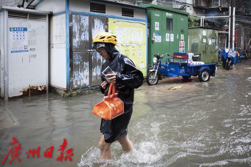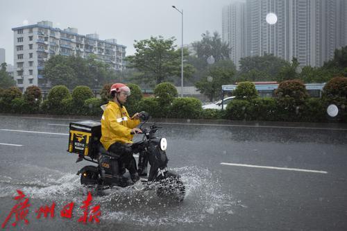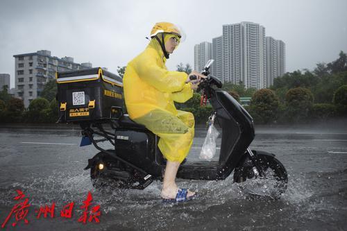 8月5日,广州市海珠区,外卖小哥冒雨送餐。