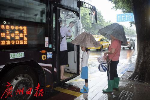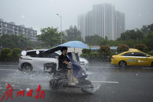8月5日,广州市海珠区,市民雨中出行。