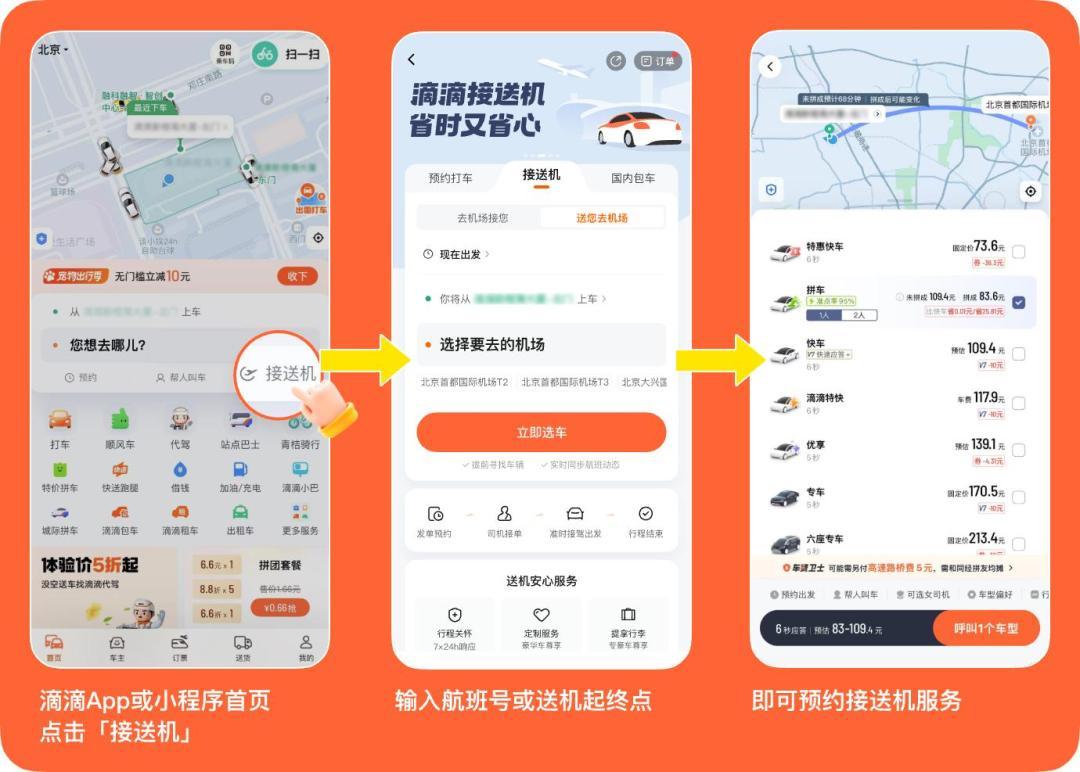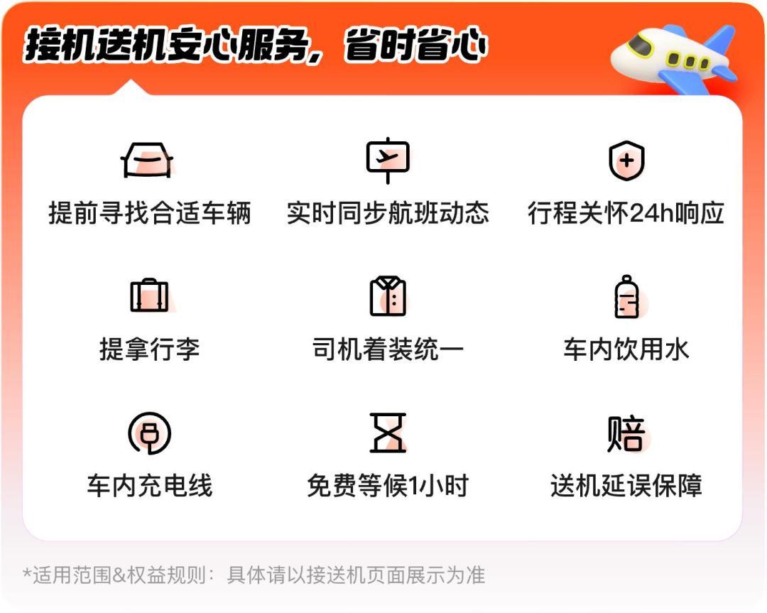假期期间,使用滴滴接送机服务还可享多重权益保障。用户可通过滴滴App或小程序首页进入“接送机”服务页面,输入航班号或送机起终点,即可预约接送机服务。