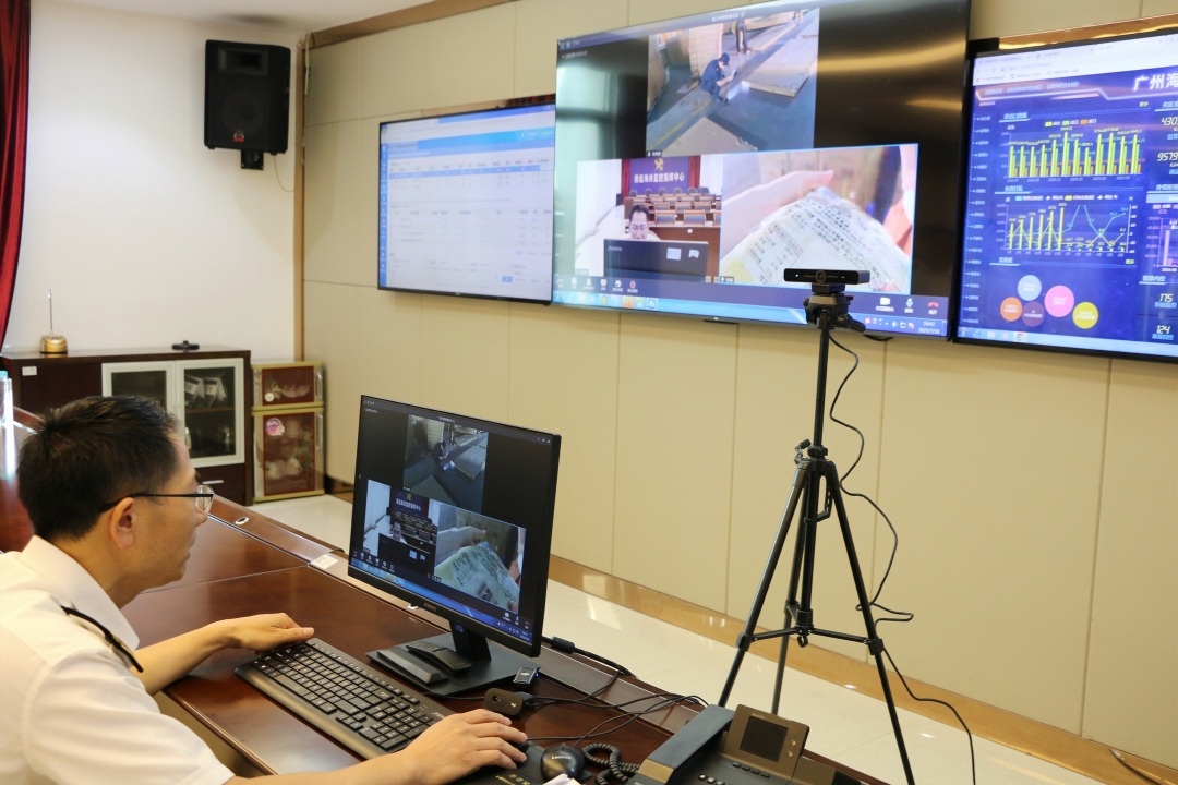 近日,在广州海关所属清远海关的监控指挥中心内,1名海关业务专家运用海关总署统一部署的属地查检业务管理系统远程查检作业平台,同时与2名分别在70公里外竹木草生产企业和90公里外出口食品厂的现场查检关员进行音视频连线,40分钟后同步完成一批出口木制家具和一批出口食品的查检作业。这是广州海关运用海关属地查检业务管理系统远程查检作业平台开展的首票“1+N”远程查检作业,相较于传统的现场双人属地查检作业模式,这一模式进一步节约了企业通关时间,提升了企业通关体验感。
