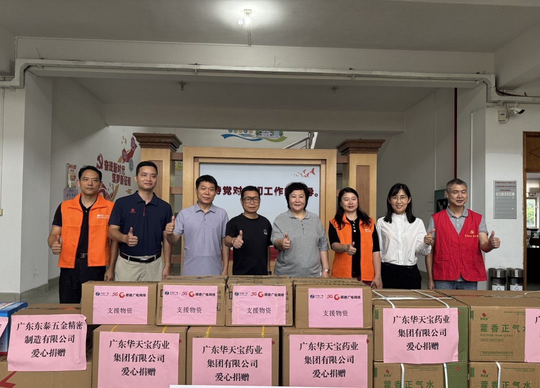 此外,广东省广播电视网络股份有限公司佛山顺德分公司捐赠蚊香、驱蚊液、瓶装水等防控物资一批;广东华天宝药业集团有限公司捐赠藿香正气水、金菊五花茶颗粒冲剂等药品一批;广东东泰五金精密制造有限公司捐赠驱蚊液、电热蚊香、通电灭蚊灯、蚊虫消杀药等一批防控物资。