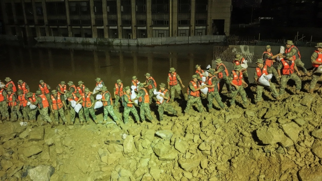 8月5日上午,惠阳区市政和代建事务中心在巡查时发现,淡水河水位持续上涨,漫过三标六号路引桥在建工程围堰,出现险情,并第一时间将情况上报至区三防办。险情发生后,区委、区政府高度重视,立即组织区市政和代建事务中心、区住建局、区农业农村水利局、区应急管理局、淡水街道办等部门前往现场开展联合应急抢险,共出动600余人、施工机械及车辆等约90台,持续开展应急抢险工作。驻惠某部队200名官兵也赶赴现场参与抢险。