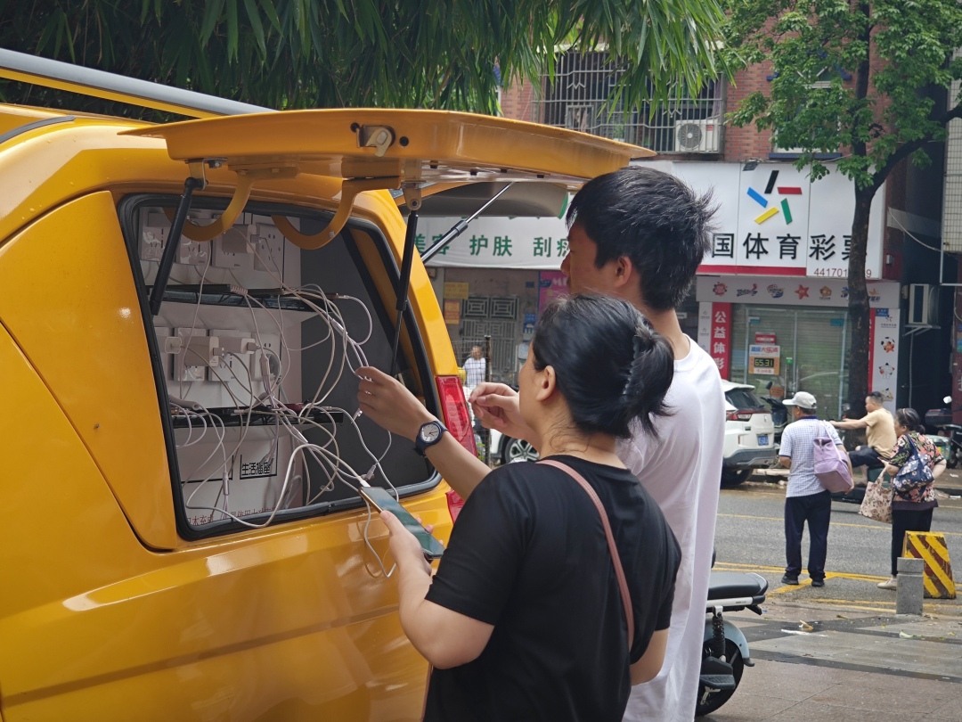 广东东莞市翠亨豪园小区因内涝停电,居民们的手机电量纷纷“告急”。8月6日凌晨,国家级电力应急特勤队的手机充电车火速驰援。“你们来得真及时,我手机快要没电了。”一位居民激动地说,手机充电车成了雨夜里最抢手的“大型充电宝”。