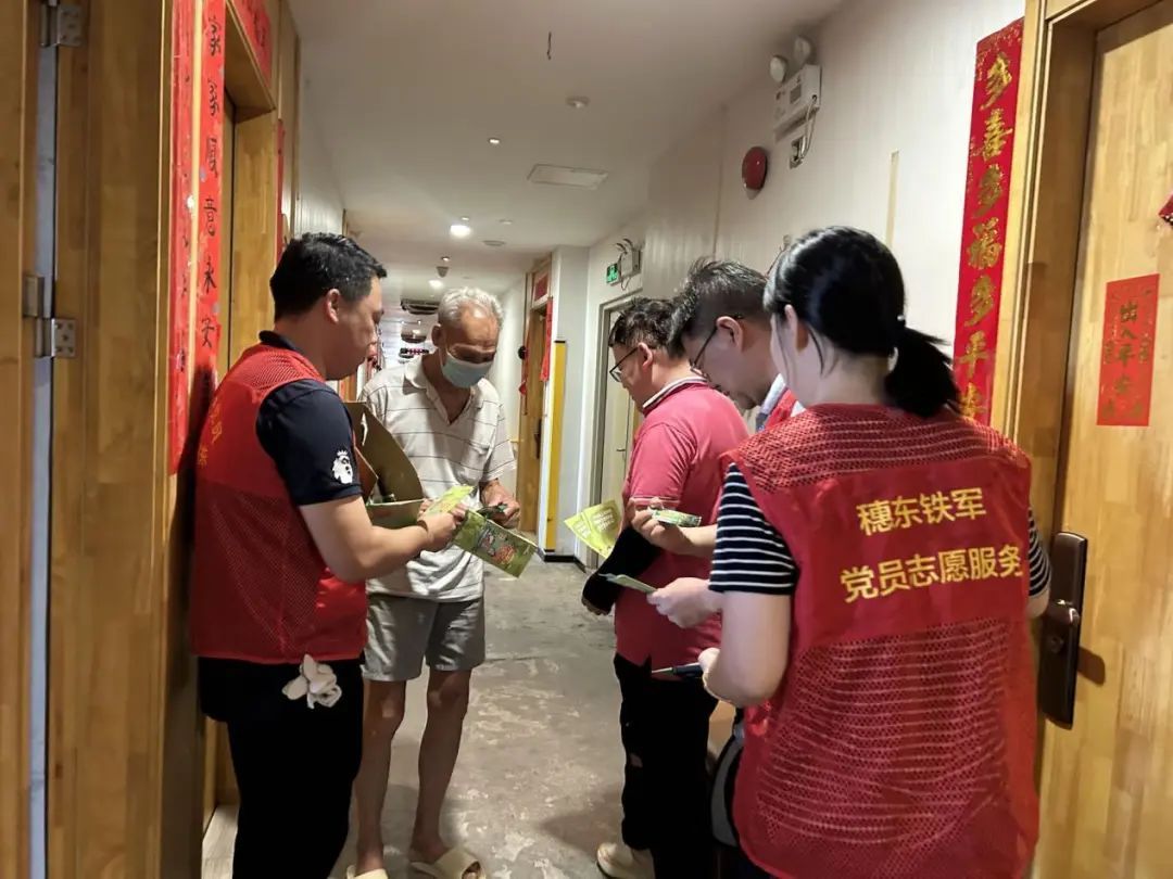 各社区还依托网格体系,组织“党员突击队”队员、网格员与志愿者组成宣传小组,身着红马甲、佩戴党员徽章开展上门宣传。截至8月1日,累计开展“双热”宣传活动104场次,悬挂横幅30条,发放宣传单张2867份,向居民及企业免费派发灭蚊片3300余片。穗东街24名驻企党建联络员深入联东U谷、景盛产业园,组织企业排查天台、电动车停放处、绿化带等230处重点区域,共计整改蚊虫孳生隐患29处。