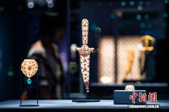 8月6日,香港首个全面展示莫卧儿王朝艺术的特别展览“莫卧儿王朝瑰宝——英国维多利亚与阿尔伯特博物馆珍藏”在香港故宫文化博物馆向公众开放。本次特展由香港故宫文化博物馆、维多利亚与阿尔伯特博物馆联合主办,精选逾100件莫卧儿王朝“黄金时代”的艺术瑰宝,在绘画、珠宝、建筑构件等多个类别呈现该王朝的多元艺术风格和工艺巅峰。展期将持续至2026年2月23日。图为莫卧儿宫廷作坊的匕首、吊坠、戒指展品。