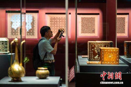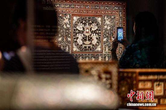 古吉拉特邦“莫卧儿王朝祭台装饰”展品吸引观众欣赏拍照。