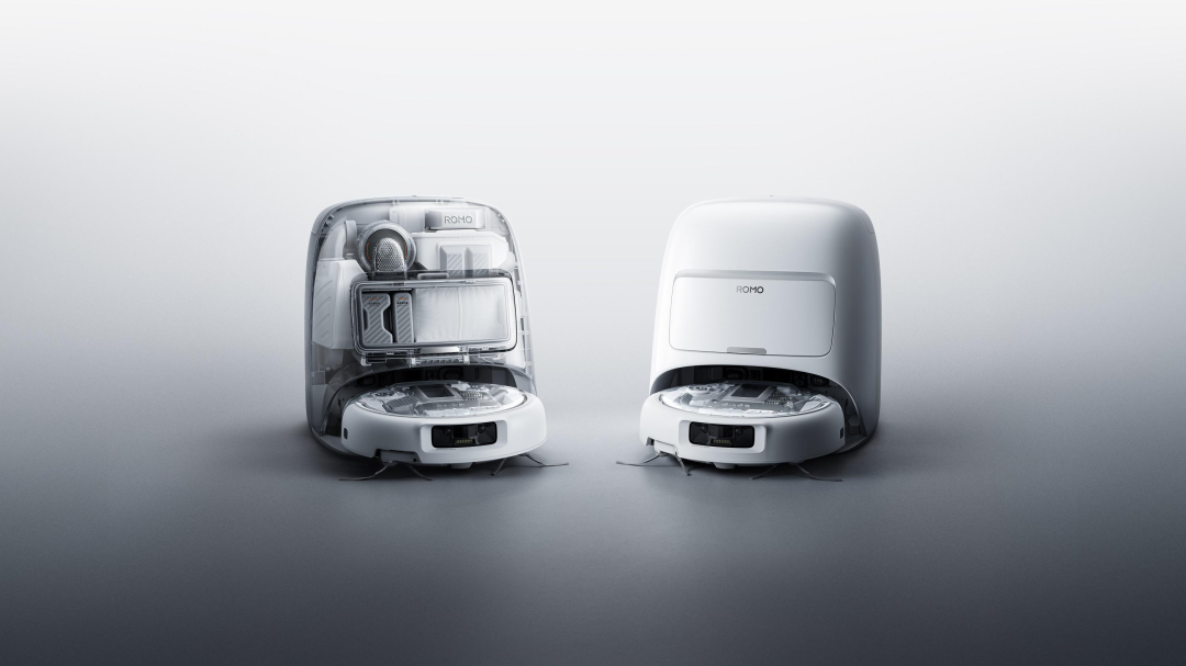 ROMO 系列三款机型在设计上强化了科技美学属性,在保证功能性的同时,形成梯度差异。硬件配置上,三款机型均搭载 25000Pa吸力的9叶片金属扇叶电机,可应对从微尘到花生壳的多样垃圾。针对边角清洁痛点,ROMO配备柔性双机械臂系统,基于实时地图与智能贴合算法可实现100%边角贴合,解决清洁盲区问题。