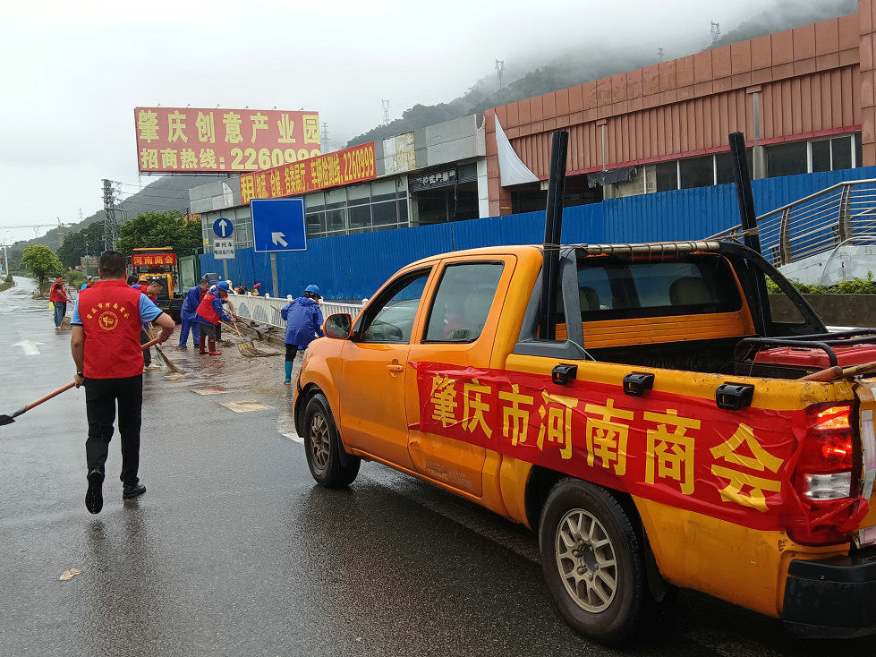 肇庆市河南商会等社会团体也出动人员和清淤车辆,积极投入到端州一路等地的清淤清污工作中,履行社会职责。
