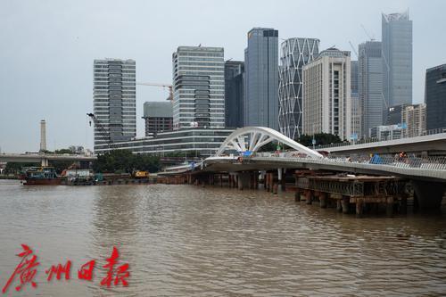 作为广州市住房和城乡建设局统筹的城市品质提升工程项目,黄埔涌步行桥预计8月底前完成建设,将解决交通断点问题,形成步移景异的慢行桥梁,成为连接沿江绿道与城市核心区的关键纽带。