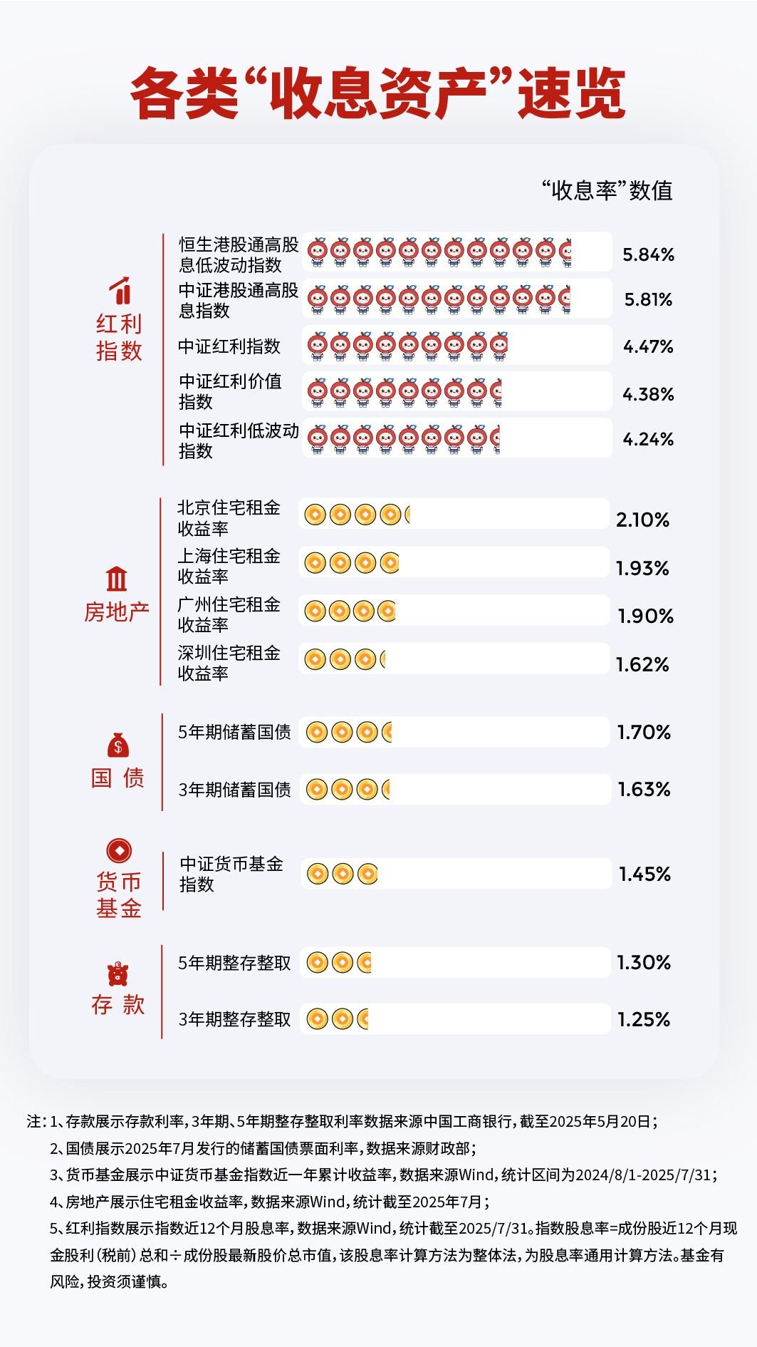 王阿姨的困扰并非个例,低利率时代的“收息焦虑”越来越常见。依靠简单“收息”为自己的日常生活增加收入,正在变得越来越难。我们来看看几种比较常见的“收息资产”,现在的收益率大概有多少?