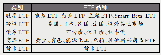 风险程度从低到高分别为货币ETF、债券ETF、黄金ETF、股票ETF和跨境ETF。