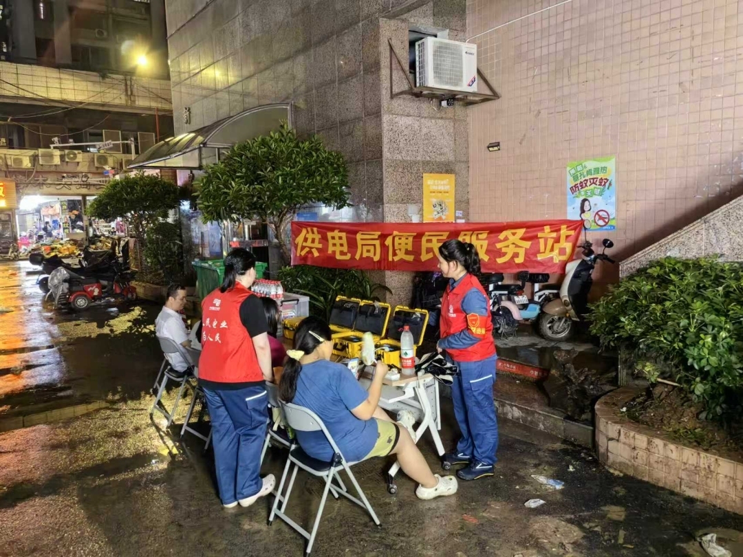 “电停但服务不能停,必须急百姓所急。”东莞东北区供电局常平供电服务中心副经理周日龙介绍说。在各水浸小区,东莞供电局一方面联合小区物业、水务部门抢修人员等合力排涝,另一方面同步调派应急发电车,及时为小区临时供电,在水浸小区设立便民服务点提供手机、应急照明等充电服务,最大限度降低对居民生活的影响。