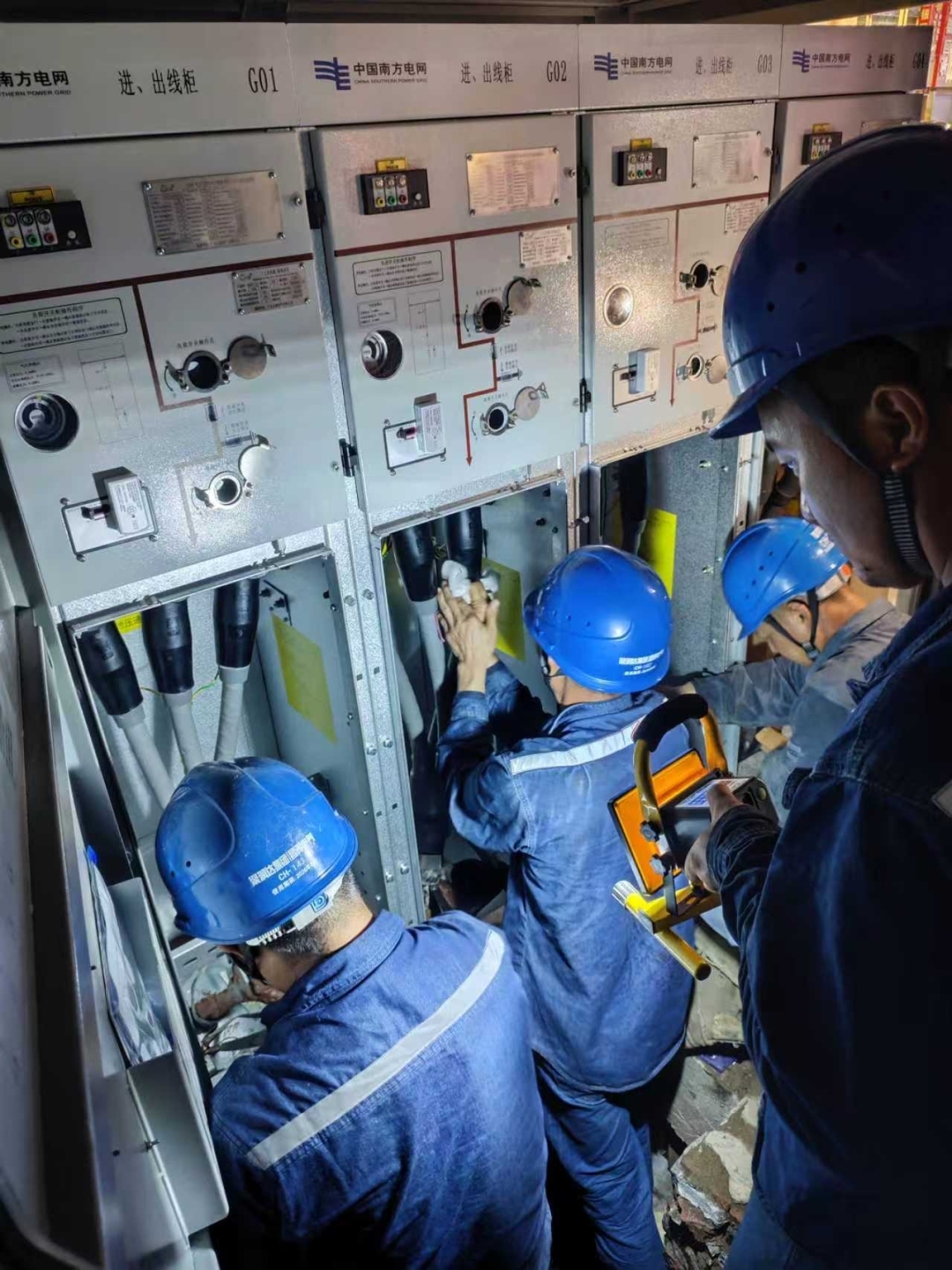 夜已深,小区里分外安静,没电的夜晚似乎只剩下车库里的送风系统还在工作,和配电房里忙碌的身影形成了反差……同一个小区的另一个配电房里,南方电网广东东莞东南区供电局抢修人员罗其昌挎着工具包,在极为狭窄的空间内拆卸、安装、调试电表。汗流浃背,浅蓝色的衣服都湿透成为深蓝色,两小时内,罗其昌和同事们他们完成了900多支电表更换。