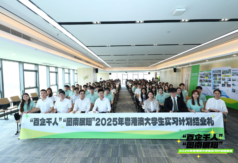 8月8日,广州南沙“百企千人”“图南展翅”2025年粤港澳大学生实习计划结业礼在南沙国际人才港举行,近200名青年学子参加了本次活动。