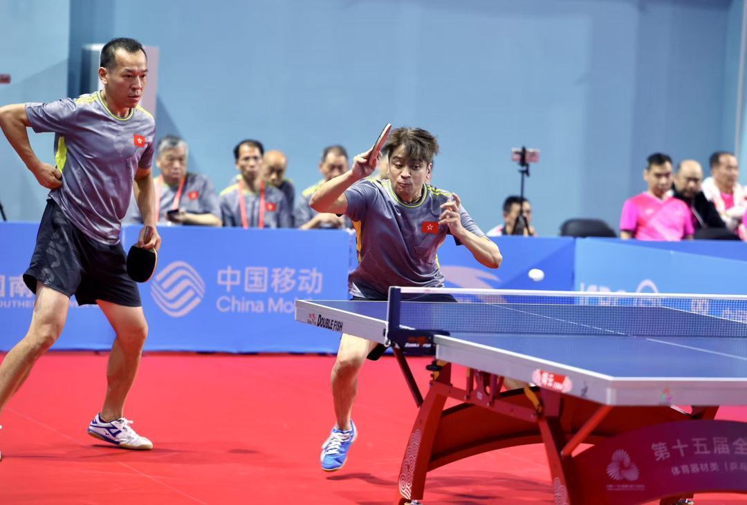 香港队老将组双打组合王国明/林志恒都是第一次参加全运会,他们说非常荣幸,因为十五运会在粤港澳三地举行,香港队也是东道主之一,所以很有意义,本次比赛他们是志在参与,尽力就行。