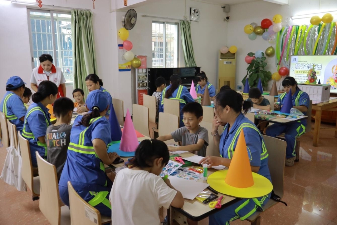 近日多雨,位于从化区的“环卫之家”里却气氛热烈,孩子们挥动画笔,度过欢乐一天。这是从化区在“环卫之家”安排的暑期活动——“巧手制帽,爱暖童心”现场。在面对环卫工人家庭暑期“子女无人看管”的现实难题,“环卫之家”提供了看护服务,让环卫工人在外安心工作,子女在“环卫之家”开心参加各种活动,为环卫工人父母解决暑假之忧。