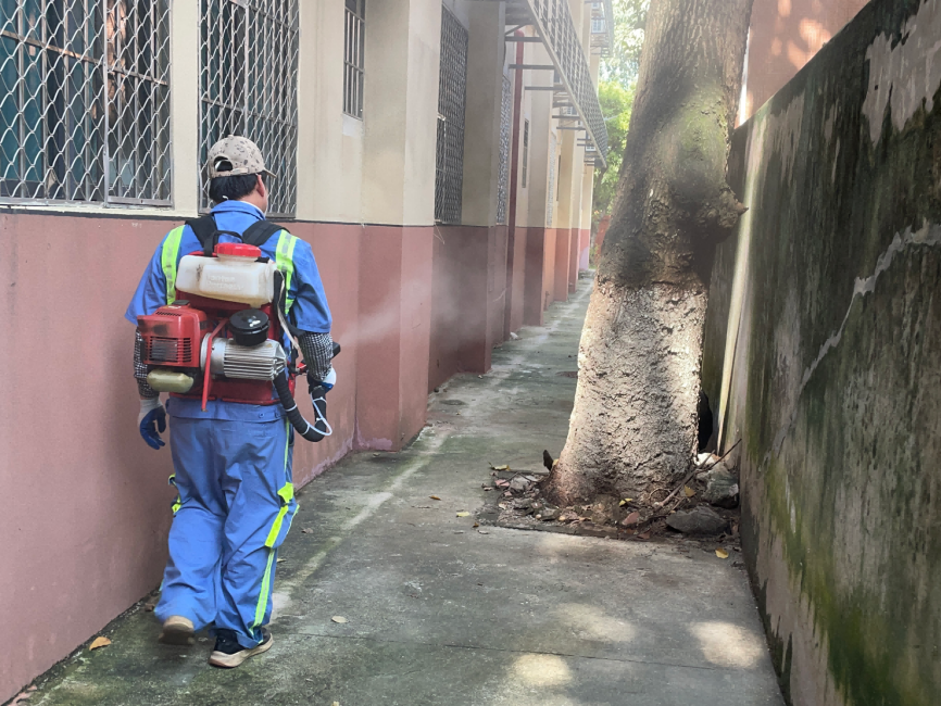 “早上7时到9时是蚊子的活跃时段,在这时段进行消杀灭蚊效果更好。”上午8时许,农林街消杀队伍准时集结,对学校、机团单位、居民大院等人员密集区域展开喷药灭蚊行动。