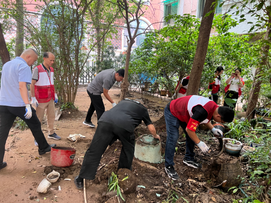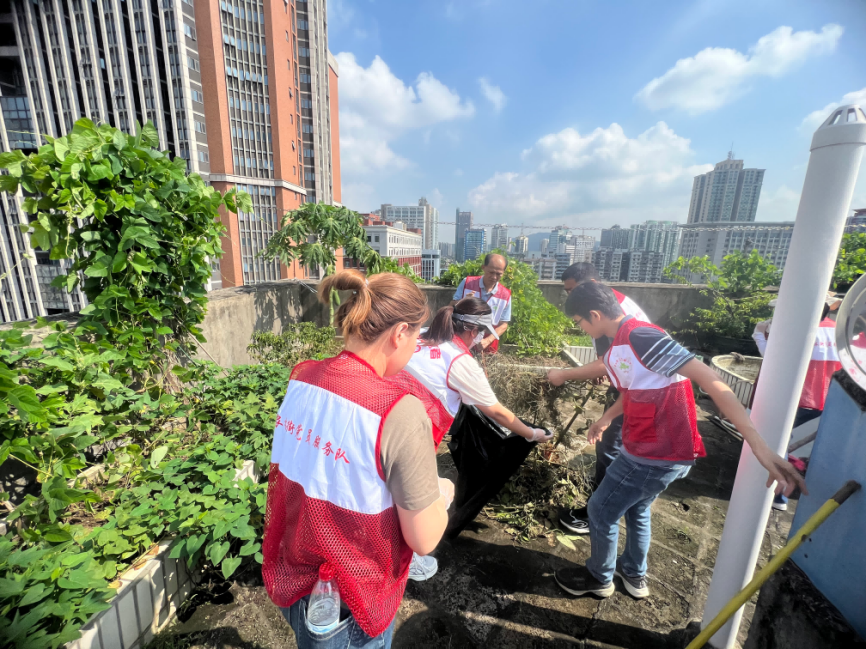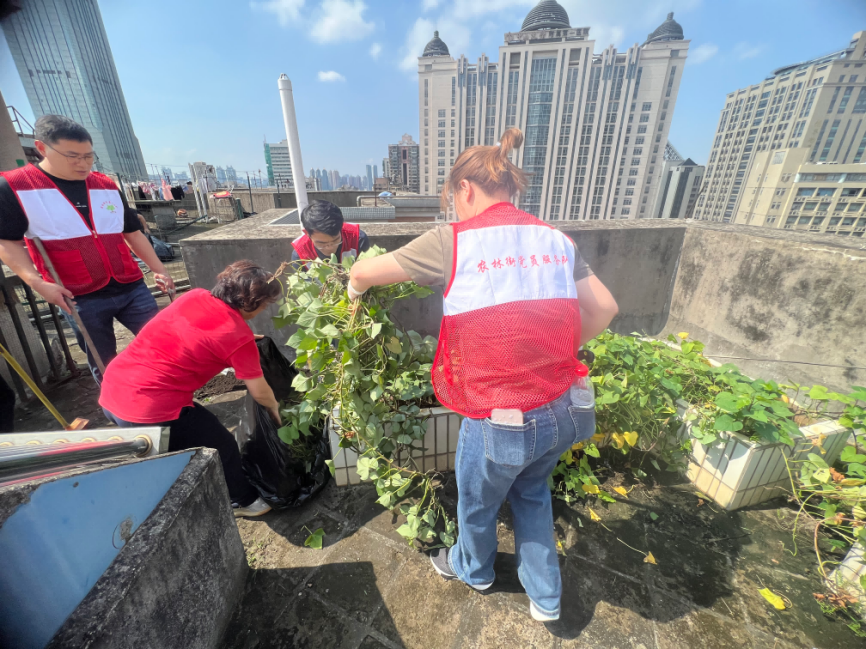 农林街广泛发动社区工作人员、小区物业、机团单位、党员志愿者、居民群众参与此次爱卫行动,集中清理居民楼天台、小区花园、绿化带、卫生死角等区域,并同步开展入户宣传,号召人人齐参与,共筑“两热”防线。